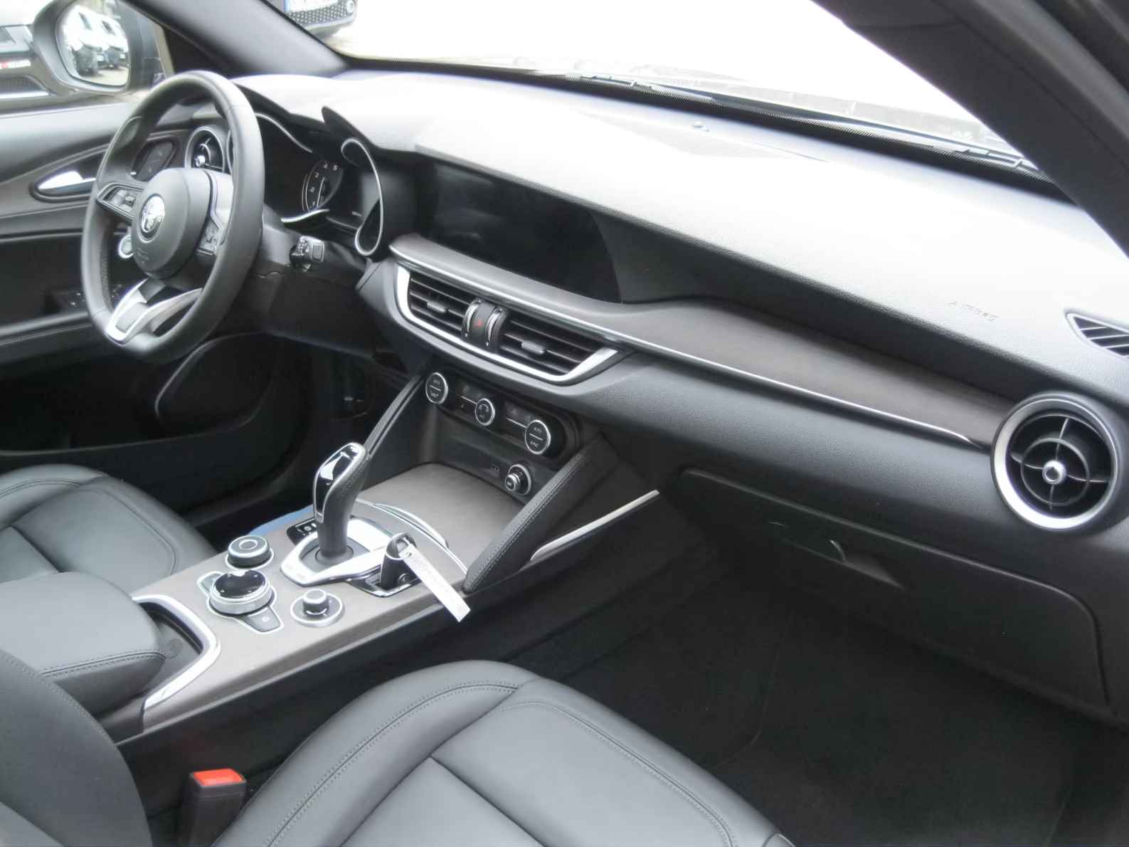 Schitterend uitgevoerde Alfa Romeo Stelvio 2.0T Q4 Ti (206kW/280pk) van 03-2023 met slechts 24.967km. gereden (1e Eig - Unfallfrei) in het Grigio Vesuvio Metallic met een Antraciet Vol-Lederen Interieur die o.a. is uitgerust met: Automatische klimaatregeling met twee zones, Antraciet Vol-Leder Interieur, verwarmde voorstoelen, Dashboard afwerking in natuurlijk eikenhout, Q4 met vierwielaandrijving, 8-traps automatische transmissie, 8,8 inch navigatiesysteem, radio met DAB+, Apple CarPlay/Android Auto, USB/AUX, Bluetooth handsfree systeem. Touchscreen + draaiknopbediening, Electr. Bed. Glazen Panoramadak, 6 airbags, ABS, ESP, botsingswaarschuwingssysteem met noodremfunctie, Bi-xenon koplampen met dynamische bocht- en afslagverlichting & koplampreinigers, Grootlicht-assistentie, Rijstrook-assistentie, Dodehoek-assistentie, Centrale vergrendeling met afstandsbediening, Licht- en regensensor, Adaptieve Cruise Control, Hill Descent control, Alfa DNA rijdynamiekregeling, Parkeersensoren voor en achter incl. Achteruitrijcamera, Elektrische achterklep met handsfree bediening, Keyless Open / Sluit & Startsysteem met startknop op het stuur, Verwarmd Multifunctioneel Lederen stuurwiel, Elektrische stoelverstelling met geheugen voor bestuurdersstoel, Asymmetrisch neerklapbare achterbank, 19 inch lichtmetalen velgen, Inductieve smartphone-laad voorziening, Rijassistentie-pakket: Actief Blind Spot Assist / Active Lane Keeping Assist / Driver Attention Warning / Intelligent Traffic Sign Recognition / Intelligent Speed ​​Control / Traffic Jam Assist / Highway Assist, etc, etc.....