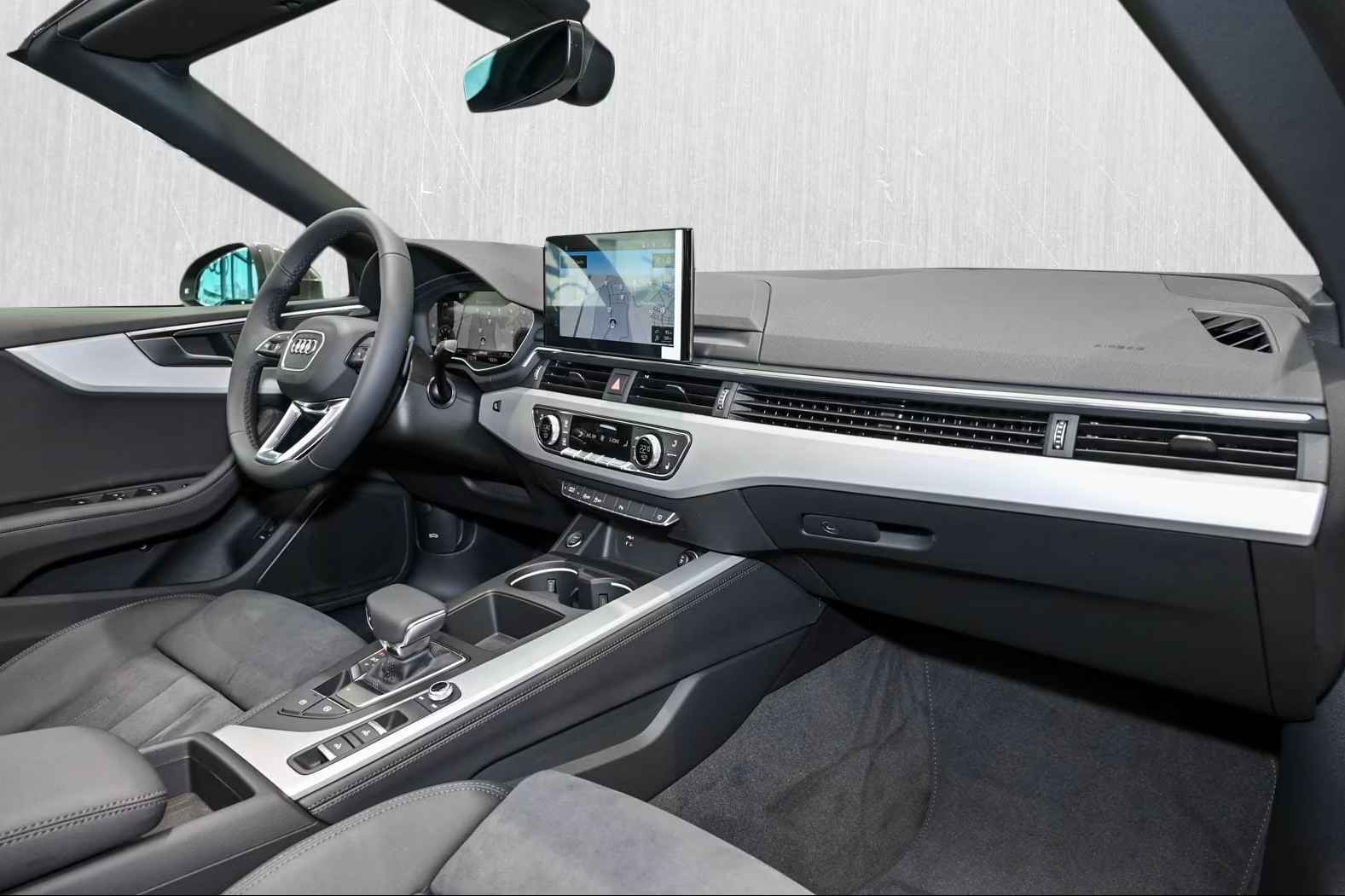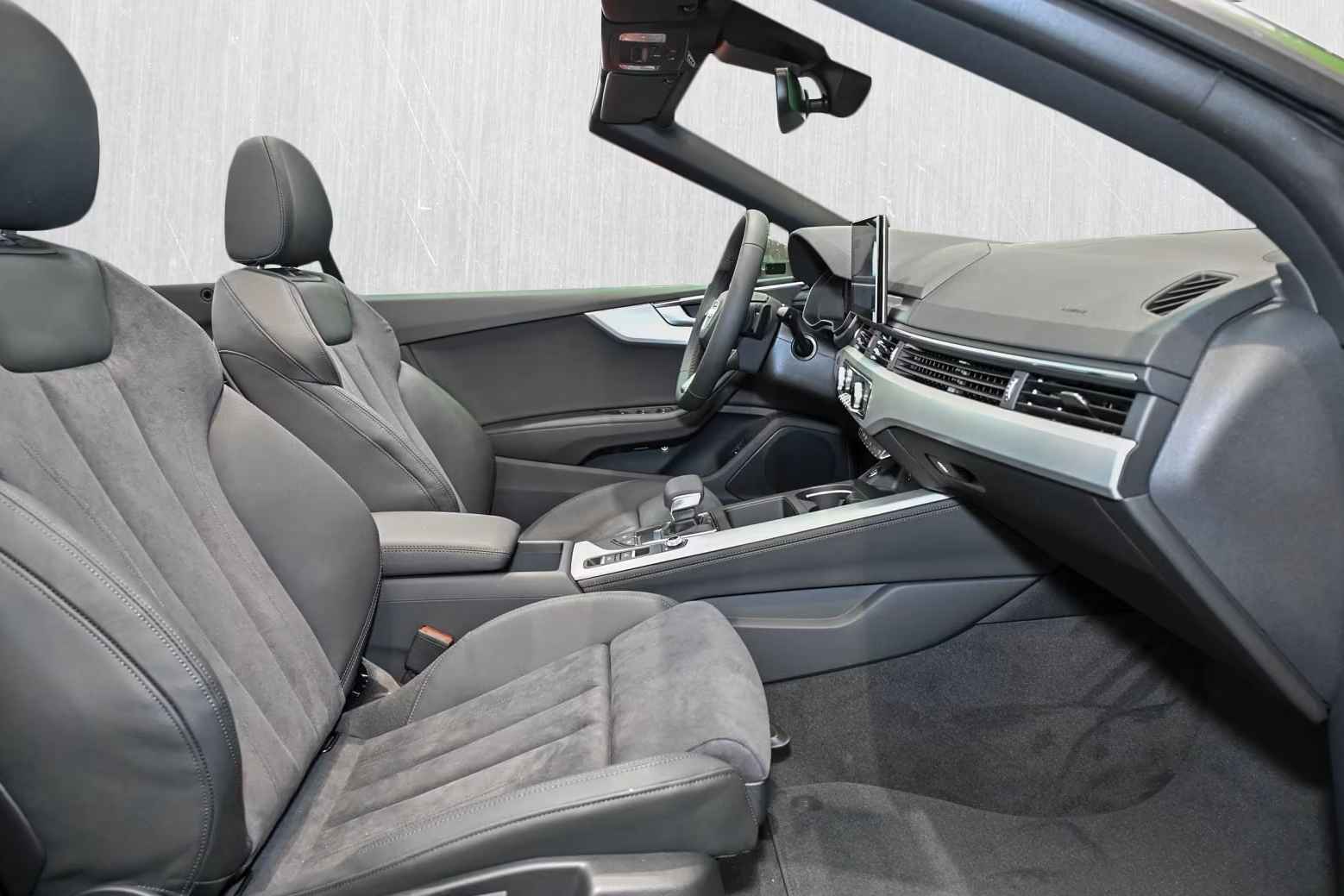 Schitterend Uitgevoerde Audi A5 Cabriolet 40 Tfsi S-LINE Competition van 06-2024 met Slechts 17.105km. gereden in het Chronos greau Metallic met een Antraciet Half-Leder / Alcantara Interieur (Sportstoelen) die o.a. is uitgerust met de onderstaande opties & accessoires: (4A3) Verwarmde voorstoelen, (PXB) Matrix LED-koplampen met Audi laserlicht & LED-achterlichten en koplampreinigingssysteem, (6K8) Audi pre sense city, (7K1) Bandenspanningscontrolesysteem, (9ZE) Audi telefooncel, (PYH) Navigatiepakket, (PYG) Smartphone infotainmentpakket, (GB1) LTE-ondersteuning voor Audi telefooncel, (IW3) Audi connect noodoproep & service met Audi connect afstandsbediening & bediening, (QV3) Digitale radio-ontvangst, (9K1) Nekverwarming voor, (4GF) Voorruit met warmte-isolerend en akoestisch glas, (9AQ) 3-zone deluxe automatische airconditioning, (9S9) Audi virtual cockpit plus, (1XW) Multifunctioneel 3-spaaks lederen stuurwiel met Schakelfunctie, (4UF) Airbags voorin / airbag voorpassagier uitschakelbaar, (VL1) Verbeterde voetgangersbescherming, (6XL) Buitenspiegels elektrisch verstelbaar - verwarmbaar en aan beide zijden inklapbaar & automatisch dimmend met geheugenfunctie, (8K4) Dagrijverlichting, (1G8) Bandenreparatie-set, (4X1) Zij-airbags voor, (3B3) ISOFIX kinderzitje bevestiging en top tether voor de achterbank, (7S1) Winddeflector, (7L8) Start-stopsysteem, (V88) 20-inch L.M. Velgen in 5-Dubbel-spaaks "Polygon" Zwart Glanzend met banden 265/30R20, Lendesteun Voor, Achteruitrij-camera, Adaptive Cruise Control, Etc, etc......