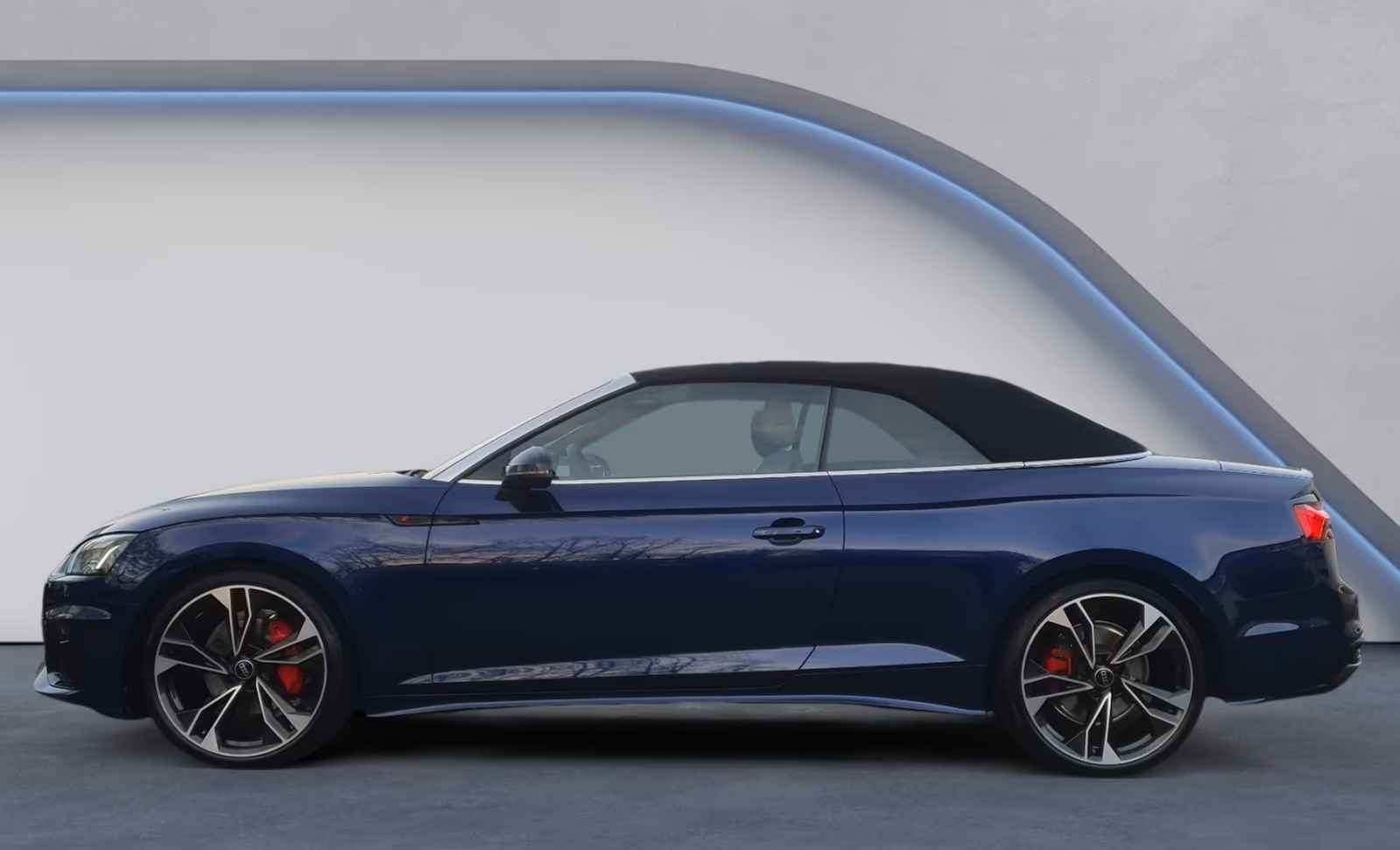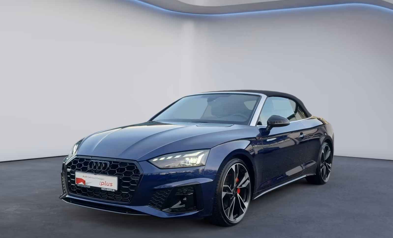 Uniek Fraaie Audi A5 Cabriolet 40 Tfsi S-Tronic S-LINE COMPETITION (150kW / 204pk) van 02-2024 met Slechts 6.750km. gereden (ex Audi-AG - UNFALLFREI) in het Navarra Blau Metallic met een Grau Half Leder / Alcantara S-LINE Interieur (Sportstoelen) die o.a. is uitgerust met: Metallic lak, S-LINE Sportpakket, 20 inch. L.M. velgen in "5-dubbelspaaks-design", S-Line Bumpers in carrosseriekleur, S-LINE Sportonderstel, Adaptive Cruise Control, Keuze bestuurdersprofiel, Windgeleider, S line interieur met Mat geborsteld aluminium inleg, Hoogglans zwarte accenten, RVS pedalen en voetsteun, Smartphone infotainmentpakket, Audi telefooncel, USB-laadaansluitingen achterin, Smartphone-interface, Zitcomfortpakket, electr. verstelbare Voorstoelen incl. Memory voor bestuudersstoel, Comfort middenarmsteun voor, Spiegel Comfortpakket, Automatisch dimmende binnenspiegel - Frameless, Audi virtual cockpit plus, Vergrote brandstoftank, Matrix LED-koplampen met dynamische richtingaanwijzers & LED-achterlichten, MMI Navigatie plus met MMI touch, B&O Soundsysteem, Digitale radio-ontvangst, Lendensteun Electr. verstelbaar, Achteruitrijcamera & 360 graden Camera, Automatische airconditioning met 3 zones, 3-spaaks Multifunctioneel Sportcontour lederen sportstuur met schakelpaddles, Nekverwarming voor, Comfortsleutel zonder Safelock, comfortsleutel met sensorgestuurde bagageruimteontgrendeling, Ambiente verlichtingspakket, ISOFIX kinderzitjebevestigingen en Top Tether voor de achterbank, Audi pre sense city, Audi drive select, Lane departure warning, Verlichte dorpels voorin met aluminium inleg - S-logo, Volledig Automatische akoestische softtop, Camera gebaseerde verkeersbordherkenning, S-line bumpers, Warmte-isolerend glas voor zij- en achterruiten, Warmte-isolerende en akoestische voorruit, etc, etc.....