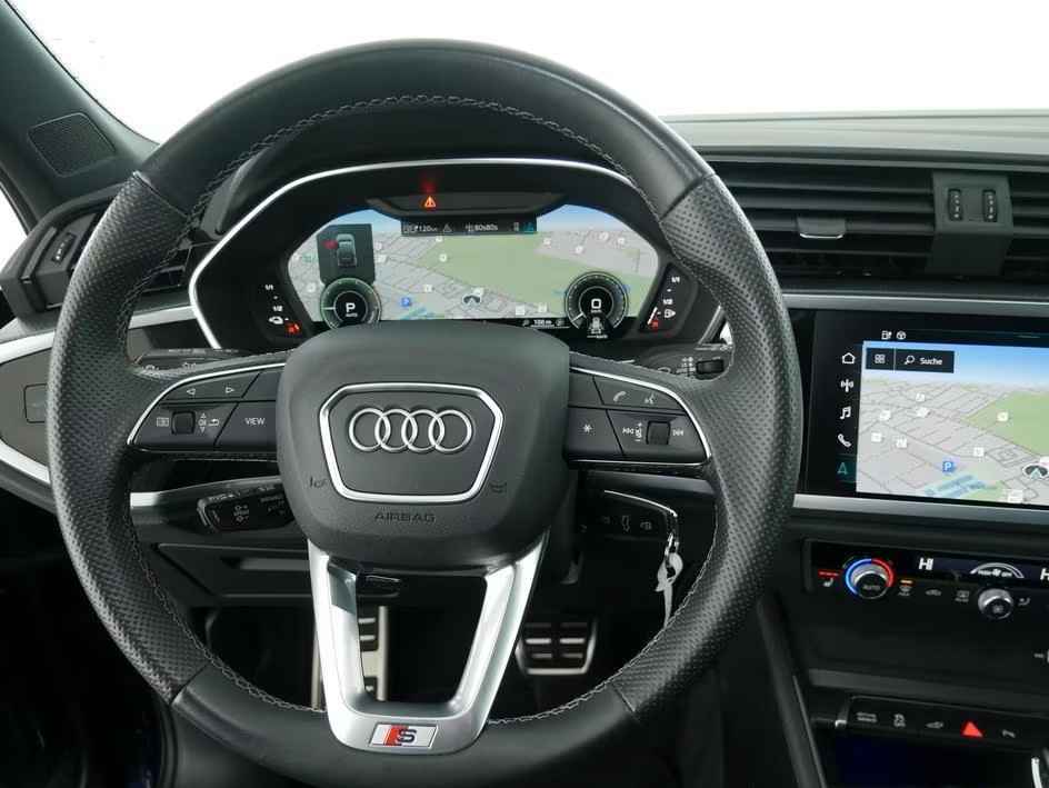 Zeer Fraai uitgevoerde Audi Q3 Sportback 45 Tfsi-e (180kW/245pk) S-tronic S-LINE van 09-2022 met 41.200km. Gereden (1e EIG - Unfallfrei) in het Navarra Blau Metallic met een Light Grau Vol-Leder Interieur (Sportstoelen) die o.a. is uitgerust met: S-LINE Sportpakket, Assistentiepakket, Opberg- en bagageruimtepakket, Sfeerverlichtings-pakket Plus, S-LINE interieur, Glanspakket, Automatische klimaatregeling met 2 zones, Elektrische stoelverstelling, Verwarmde stoelen, Centrale vergrendeling met afstandsbediening, Multifunctioneel Lederen sportstuur, Licht- & regensensor, Elektrisch verstelbare - inklapbare en verwarmde buitenspiegels, Hill Start Assist, Grootlicht-assistent, Automatisch dimmende binnenspiegel, Comfortonderstel, Warmte-isolerende en akoestische voorruit, Raam-/hoofdairbags, ESP (Elektronisch Stabiliteitsprogramma),