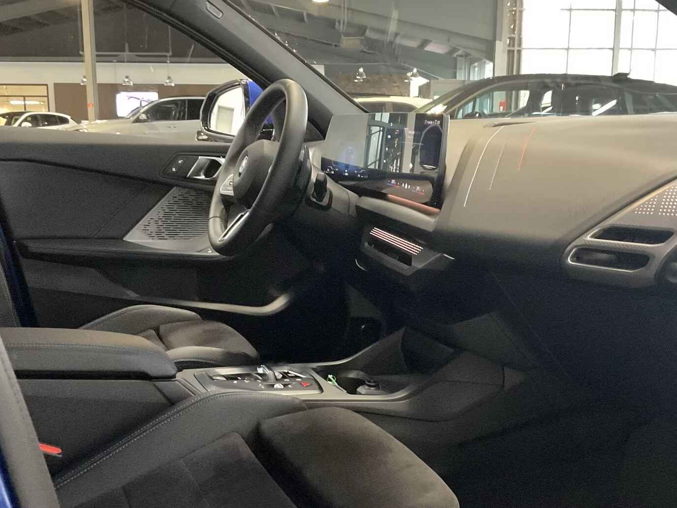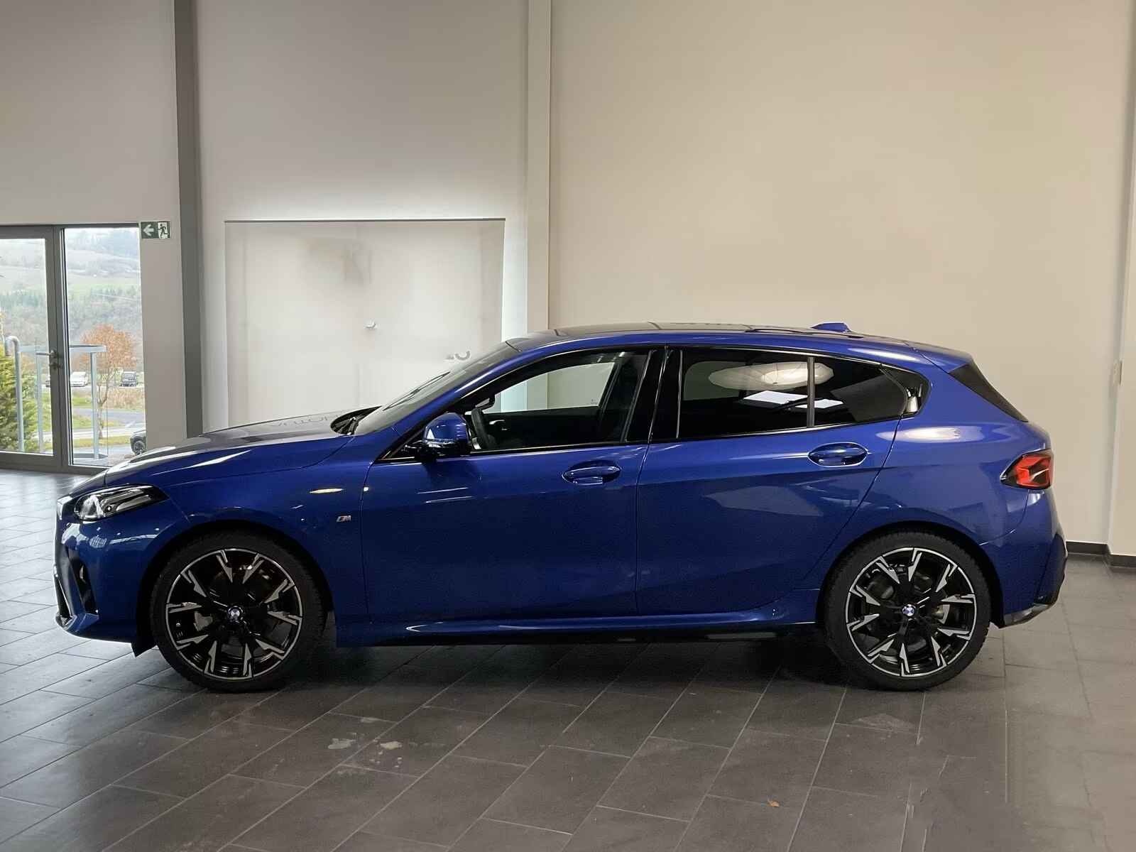 Uniek Fraaie BMW 120 M-SPORT van 01-2025 met slechts 9.594km. gereden (1e EIG - Unfallfrei - Ex BMW-AG) in het Portimao Blau Metallic met een Antraciet M-SPORT Interieur (Sportstoelen) die o.a. is uitgerust met: Adaptieve M-Technic-onderstel, Hoogglans Shadow Line, Buitenspiegel-pakket met projectiefunctie, 19-inch L.M. Velgen in "Y-spaak 976 M - Bicolor Jet Black - hoogglans gedraaid", Verwarmde ruitensproeiers, LED-koplampen, Zonwerend glas incl. Privacy Glas vanaf de B-Style, Parkeer-assistentie pakket incl. Achteruitrijcamera, Armsteun voor, Antracietkleurige hemelbekleding, Doorlaadsysteem (middenarmsteun achter), Interieurafwerking: Verlicht Aluminium Grafiet mat,
