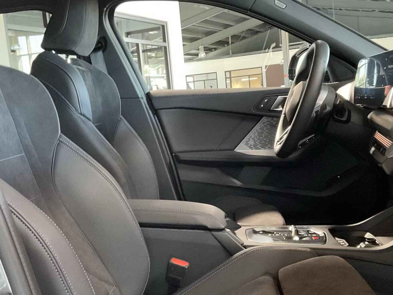 Uniek Fraaie BMW 120 M-SPORT van 01-2025 met slechts 8.095km. gereden (1e EIG - Unfallfrei - Ex BMW-AG) in het Skycraper Grau Metallic met een Antraciet M-SPORT Interieur (Sportstoelen) die o.a. is uitgerust met: Afneembare Trekhaak af Fabriek, Adaptieve M-Technic-onderstel, Hoogglans Shadow Line, Buitenspiegel-pakket met projectiefunctie, 19-inch L.M. Velgen in "Y-spaak 976 M - Bicolor Jet Black - hoogglans gedraaid", Verwarmde ruitensproeiers, LED-koplampen, Zonwerend glas incl. Privacy Glas vanaf de B-Style, Parkeer-assistentie pakket incl. Achteruitrijcamera, Armsteun voor, Antracietkleurige hemelbekleding, Doorlaadsysteem (middenarmsteun achter), Interieurafwerking: Verlicht Aluminium Grafiet mat, Automatische klimaatregeling met 2 zones en automatische luchtcirculatie, Stoelbekleding: M Alcantara/Veganza combinatie (zwart met grijze contraststiksels), Verwarmde Sportstoelen voor, 12V-aansluiting in de middenconsole voor, BMW Live Cockpit Plus, Multimedia-interface 2 x USB (Type C) in de middenconsole voor console, Personalisatie-systeem (BMW My Modes), Digitale radio-ontvangst (DAB+), Servicesysteem: Intelligent Emergency Call incl. TeleServices, Remenergie terugwinning (recuperatiesysteem), Dynamische tractiecontrole (DTC), Rijhulpsystemen: Hill Start Assist / Attention Assist / Driving Assistant Plus / Rear Collision Prevention (achteraanrijding voorkomen) / Parking Assist / Parking Hill Start Monitoring / Performance Control / Cross-traffic Assist / Reverse Assist / Reverse Assist met noodremfunctie (Active PDC) / Lane Change Warning System / Traffic Sign Recognition met snelheidslimietassistentie, Snelheidsbegrenzer, Actieve Cruise Control met stop & go-functie, 7-traps dubbele koppelingstransmissie met Steptronic, electr. te bed. Achterklep, Isofix-bevestigingspunten voor kinderzitjes op de voorpassagiersstoel & achterbank, Multifunctioneel M-Technic Sportstuur met Schakelpaddles, Licht- en regensensor, Lichtassistentie (Follow me home), electr. te bed. Glazen Panoramadak, Personalisatiesysteem (Personal eSIM), Actieve motorkap, Aanhangerassistentie, Wielsloten, Active Guard (remassistentie), Post-crash systeem (PC-iBrake), Bandenspannings-controle systeem, Servicesysteem: Wettelijke noodoproep, etc, etc..........