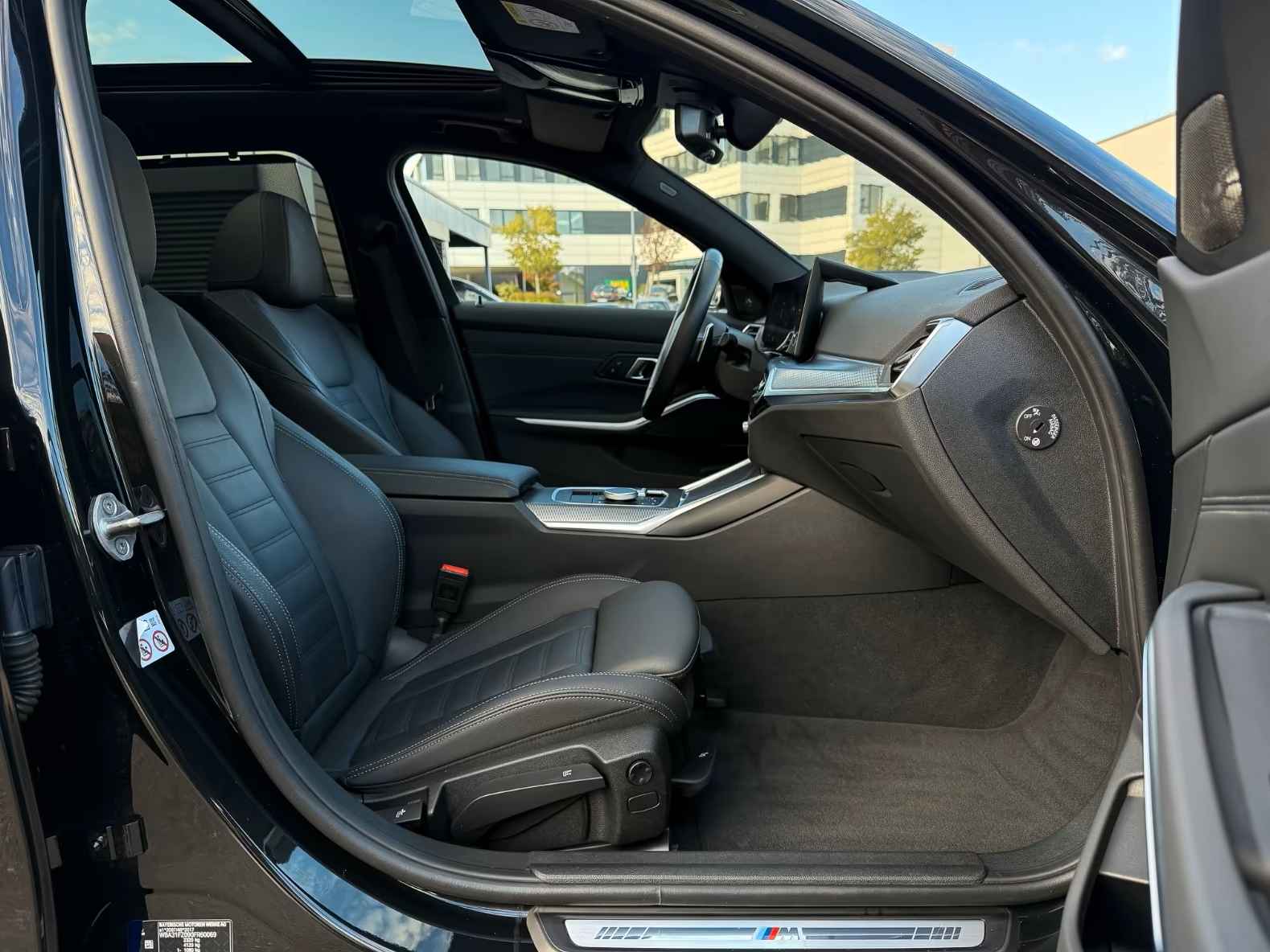Schitterend uitgevoerde BMW 320d Touring xDrive M-SPORT van 10-2023 met slechts 23.498km gereden (1e Eig - Unfallfrei) in het Saphire Schwarz Metallic met een Schwarz Vol-Leder M-SPORT Interieur (Sportstoelen) die o.a. is voorzien van: Alarmsysteem, Elektrisch inklapbare buitenspiegels, Auto Hold, Automatisch dimmende binnen- & buitenspiegels, Boordcomputer, Parkeerhulp: voor en achter PDC incl. • Achteruitrijcamera, Intelligente Personal Assistant, electr. uitklapbare Trekhaak, Elektrische ramen voor en achter, Dynamische stabiliteitsregeling (DSC), Grootlicht-assistent, Privacy Glas vanaf de B-Style, Automatische klimaatregeling met 3 zones en automatische luchtrecirculatie, Automatische klimaatregeling achter, Adaptieve led-koplampen, Lederen Multifunctioneel stuurwiel met Schakelpaddles, Navigatie Professional, BMW Breedbeelddisplay, Mistlampen, Parkeer-assistent, Licht- & Regensensor, Bandenspanningscontrolesysteem (TPMS), Variabele sportbesturing, Spraakbediening, Handsfree telefoonsysteem met USB-aansluiting, Adaptive Cruise Control, electr. bed. Glazen Panoramadak, electr. te bed. Achterklep, Centrale vergrendeling met afstandsbediening, Opbergpakket, ConnectedDrive Services Pakket, Hemelbekleding in antraciet, Individuele hoogglans Shadow Line uitgebreid, LED-mistlampen, M Aerodynamica Pakket, M Sportonderstel, 19-inch lichtmetalen velgen in 5 Dubbelspaaks design - bi-colour, Lederen interieur, Harman Kardon HiFi-systeem, Innovatie Pakket, Akoestisch glas, Middenarmsteun: voor en achter, Neerklapbare achterbank met Doorlaadsysteem, Stoelverwarming, Lendensteun, Driving Experience Control, ISOFIX kinderzitjebevestigingen, Hoofdairbag-systeem, Voorruit in Climate Comfort-uitvoering, Intelligent Emergency Call inclusief TeleServices, Zonneschermen voor de achterportierramen, Standverwarming, etc, etc....