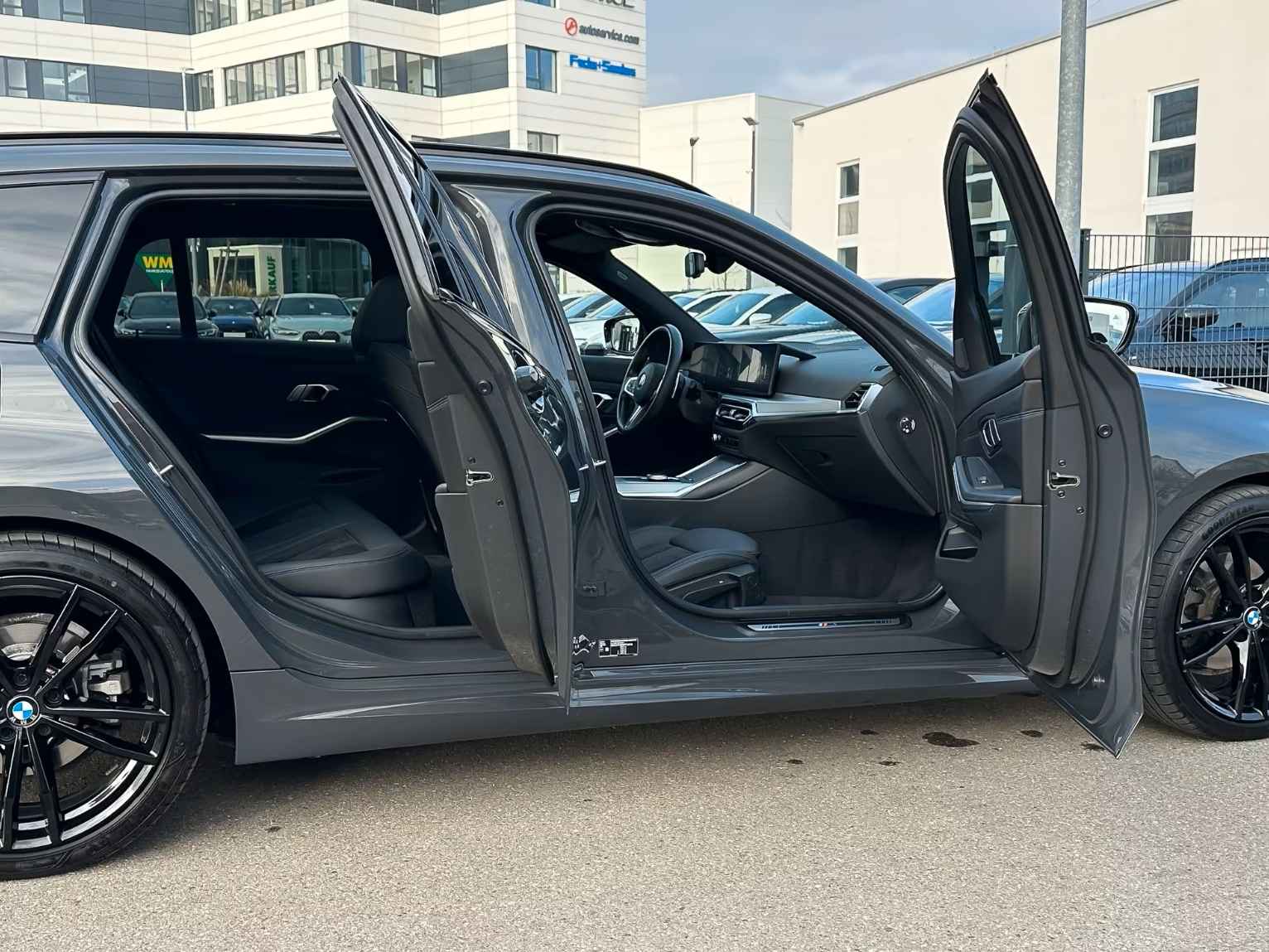 Schitterend uitgevoerde BMW 320d Touring xDrive M-SPORT van 07-2023 met 39.898km gereden (1e Eig - Unfallfrei) in de Speciale "M" Exterieur Kleur Dravit Grau Metallic met een Schwarz Hallf-Leder / Alcantara M-SPORT Interieur (Sportstoelen) die o.a. is voorzien van: Alarmsysteem, Elektrisch inklapbare buitenspiegels, Auto Hold, Automatisch dimmende binnen- & buitenspiegels, Boordcomputer, Parkeerhulp: voor en achter PDC incl. • Achteruitrijcamera, Intelligente Personal Assistant, electr. uitklapbare Trekhaak, Elektrische ramen voor en achter, Dynamische stabiliteitsregeling (DSC), Grootlicht-assistent, Privacy Glas vanaf de B-Style, Akoestisch Glas, Automatische klimaatregeling met 3 zones en automatische luchtrecirculatie, Automatische klimaatregeling achter, Adaptieve led-koplampen, Lederen Multifunctioneel stuurwiel met Schakelpaddles, Navigatie Professional, BMW Breedbeelddisplay, Mistlampen, Parkeer-assistent, Licht- & Regensensor, Bandenspanningscontrolesysteem (TPMS), Variabele sportbesturing, Spraakbediening, Handsfree telefoonsysteem met USB-aansluiting, Adaptive Cruise Control, electr. bed. Glazen Panoramadak, electr. te bed. Achterklep, Centrale vergrendeling met afstandsbediening, Opbergpakket, ConnectedDrive Services Pakket, Hemelbekleding in antraciet, Individuele hoogglans Shadow Line uitgebreid, LED-mistlampen, M Aerodynamica Pakket, M Sportonderstel, 19-inch lichtmetalen velgen in 5 Dubbelspaaks design - Schwarz, HiFi-systeem, Innovatie Pakket, Middenarmsteun: voor en achter, Neerklapbare achterbank met Doorlaadsysteem, Stoelverwarming, Lendensteun, Driving Experience Control, ISOFIX kinderzitjebevestigingen, Hoofdairbag-systeem, Intelligent Emergency Call inclusief TeleServices, Zonneschermen voor de achterportierramen, Standverwarming, etc, etc....