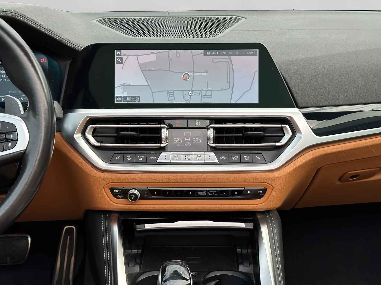 Schitterend uitgevoerde BMW 420iA Cabrio M-SPORT van de 7e maand 2021 met slechts 11.900km. gereden in het Saphire Schwarz Metallic met een Cognac "Vernasca" Vol-Leder M-SPORT Interieur (Sportstoelen) die o.a. is uitgerust met: Active Guard Plus, BMW Apps, "M"-Sport onderstel, Steptronic-8 sportautomaat, Variabele sportstuurinrichting,