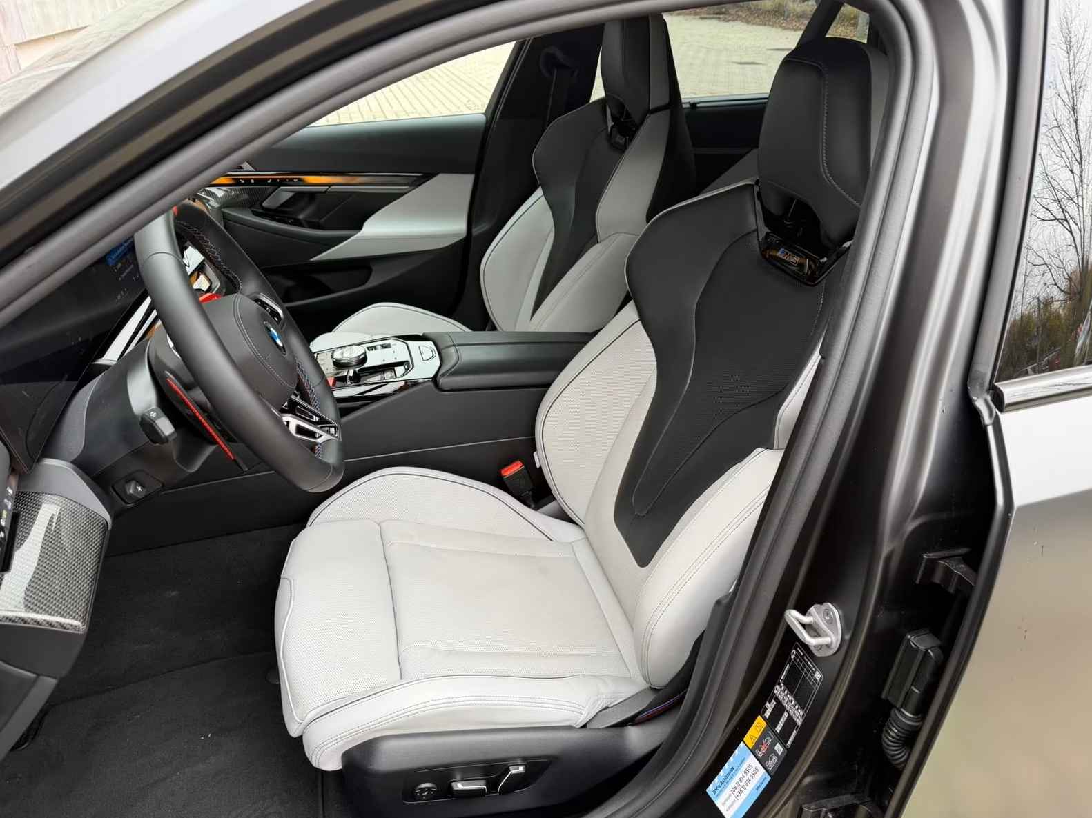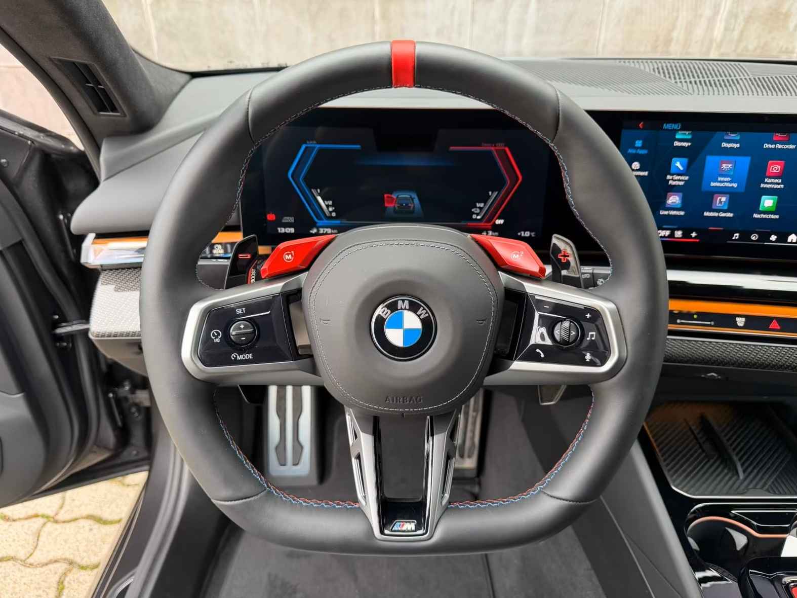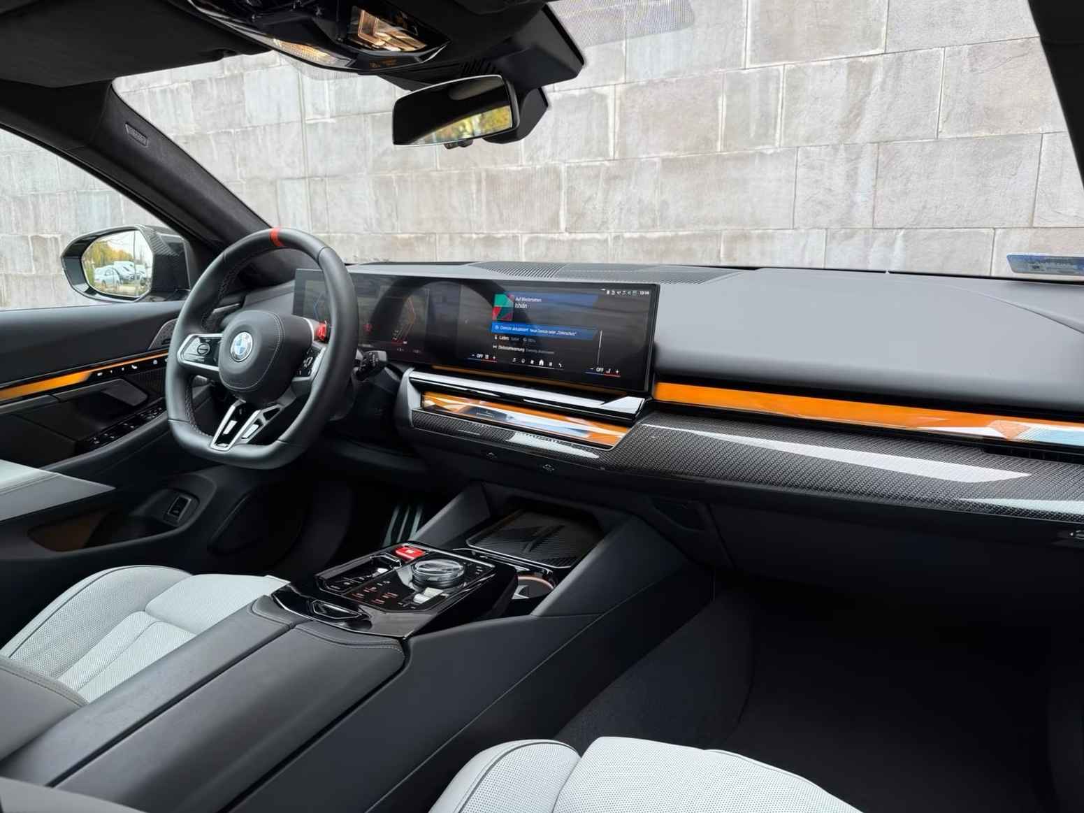 UNIEK! BMW M5 Touring M-DRIVER PACKAGE (535kW / 728pk) van 09-2025 met origineel Slechts 4.050km. gereden (Ex BMW-AG - UNFALLFREI) in het Frozen Deep Grey Metallic (Zwart Dak) met een Schwarz / Grijs "Merino" Vol-Leder M-SPORT Interieur (M-Multifunctionele Sportstoelen) die o.a. is uitgerust met de onderstaande opties & accessoires: Remsysteem: Compound - M-remsysteem (rode remklauwen), M Drive Professional, Electr. Bed. van de achterklep, Zonwerend glas incl. Privacy Glas vanaf de B-style, BMW Iconic Glow Exterieurpakket, Panoramadak, Comfortpakket, BMW IconicSounds Electric, Snel laden via AC, M Carbon buitenspiegelkappen, Electr. uitklapbare Trekhaak (draaibare kogelkop), Driving-Assistentie Services (abonnement vereist), ConnectedPackage Professional (abonnement vereist), ConnectedDriveProfessional, Noodoproepsysteem, Parkeer-assistent Professional, Achteruitrijcamera, Rijstrook- & Rijstrookwissel waarschuwing, TeleServices, BMW Individual High-Gloss Shadow Line uitgebreid, BMW Individual Shadow Line koplampen, Hemelbekleding Alcantara / Antraciet, Adaptieve Cruise Control, Actieve stoel Ventilatie (voor), Sfeerverlichting, BMW Live Cockpit Professional, Parkeer-assistent met zelfsturend systeem, Rijassistentiesystemen: Zijwaartse parkeerhulp / Parkeer-assistent / Achteruitrij-assistentie, Inductieve laadtray voor smartphone (draadloos opladen), keyless entry, Automatische klimaatregeling met 4 zones en automatische luchtcirculatie, Lendesteunen voor, Verwarmd Multifunctioneel M-Techniek Lederen stuurwiel, M multifunctionele voorstoelen, M veiligheidsgordels, Digitale radio-ontvangst (DAB+), Achteruitrijcamera (Top View), Geïntegreerde stuurbekrachtiging - actieve besturing, Elektrisch verstelbare & verwarmde voorstoelen (met geheugen), Verwarmde achterstoelen, Zonneschermen op de achterruiten, Bowers & Wilkins geluidssysteem, Surround View camerasysteem, Reis- en comfortsysteem, De-activering passagiersairbag, Diefstalalarm met interieurbewaking, Knie-airbag bestuurder, Hoofdairbag systeem voor & achter, Bandenspanningscontrolesysteem, LED-koplampen met adaptieve lichtverdeling, Automatische transmissie - met Steptronic en Drivelogic (8 versnellingen), Interieurafwerking: M Donkerzilver / Koolstofvezel met hoogglans zilveren draden, Binnencamera, Laadkabel (5,0 m) met Type 2-connector (Modus 3, 22 kW),