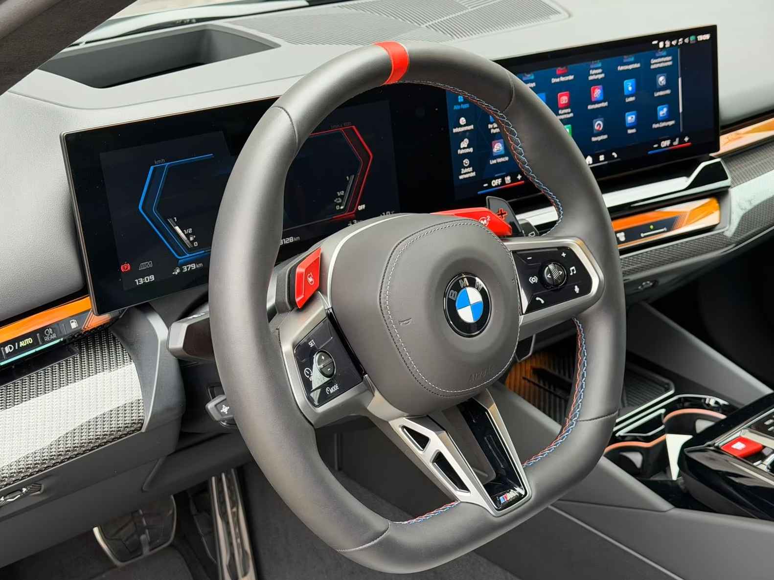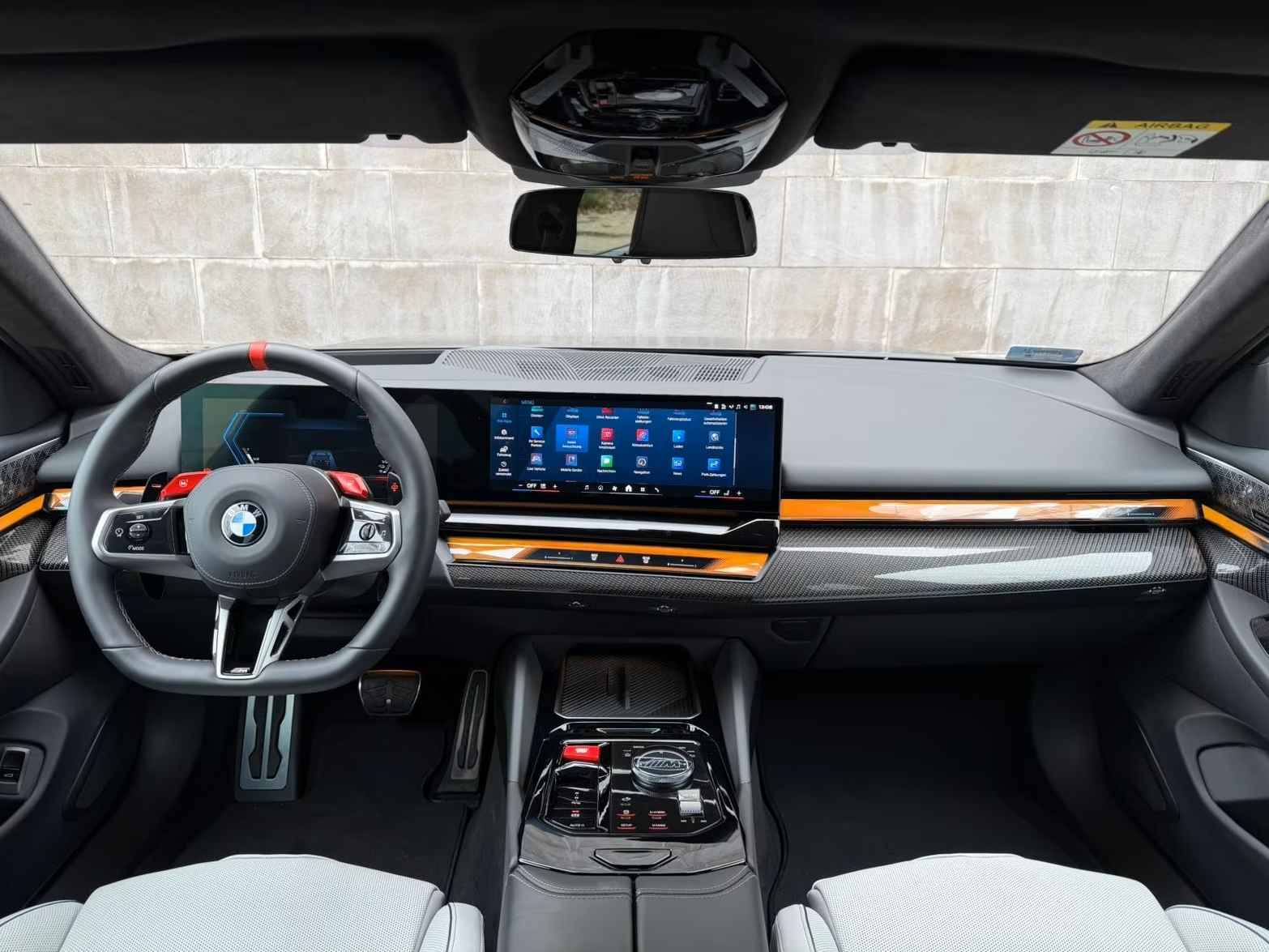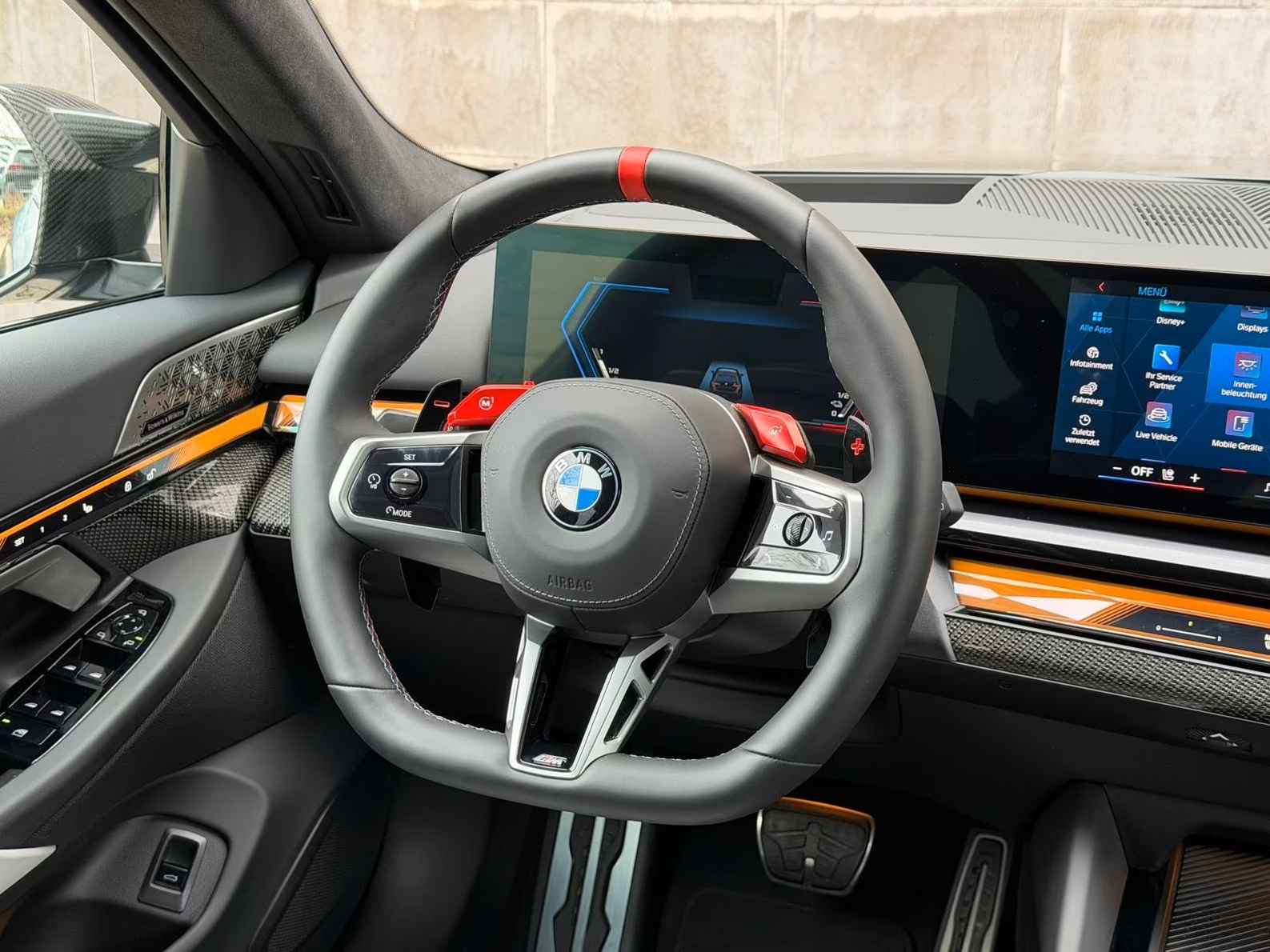 UNIEK! BMW M5 Touring M-DRIVER PACKAGE (535kW / 728pk) van 09-2025 met origineel Slechts 4.050km. gereden (Ex BMW-AG - UNFALLFREI) in het Frozen Deep Grey Metallic (Zwart Dak) met een Schwarz / Grijs "Merino" Vol-Leder M-SPORT Interieur (M-Multifunctionele Sportstoelen) die o.a. is uitgerust met de onderstaande opties & accessoires: Remsysteem: Compound - M-remsysteem (rode remklauwen), M Drive Professional, Electr. Bed. van de achterklep, Zonwerend glas incl. Privacy Glas vanaf de B-style, BMW Iconic Glow Exterieurpakket, Panoramadak, Comfortpakket, BMW IconicSounds Electric, Snel laden via AC, M Carbon buitenspiegelkappen, Electr. uitklapbare Trekhaak (draaibare kogelkop), Driving-Assistentie Services (abonnement vereist), ConnectedPackage Professional (abonnement vereist), ConnectedDriveProfessional, Noodoproepsysteem, Parkeer-assistent Professional, Achteruitrijcamera, Rijstrook- & Rijstrookwissel waarschuwing, TeleServices, BMW Individual High-Gloss Shadow Line uitgebreid, BMW Individual Shadow Line koplampen, Hemelbekleding Alcantara / Antraciet, Adaptieve Cruise Control, Actieve stoel Ventilatie (voor), Sfeerverlichting, BMW Live Cockpit Professional, Parkeer-assistent met zelfsturend systeem, Rijassistentiesystemen: Zijwaartse parkeerhulp / Parkeer-assistent / Achteruitrij-assistentie, Inductieve laadtray voor smartphone (draadloos opladen), keyless entry, Automatische klimaatregeling met 4 zones en automatische luchtcirculatie, Lendesteunen voor, Verwarmd Multifunctioneel M-Techniek Lederen stuurwiel, M multifunctionele voorstoelen, M veiligheidsgordels, Digitale radio-ontvangst (DAB+), Achteruitrijcamera (Top View), Geïntegreerde stuurbekrachtiging - actieve besturing, Elektrisch verstelbare & verwarmde voorstoelen (met geheugen), Verwarmde achterstoelen, Zonneschermen op de achterruiten, Bowers & Wilkins geluidssysteem, Surround View camerasysteem, Reis- en comfortsysteem, De-activering passagiersairbag, Diefstalalarm met interieurbewaking, Knie-airbag bestuurder, Hoofdairbag systeem voor & achter, Bandenspanningscontrolesysteem, LED-koplampen met adaptieve lichtverdeling, Automatische transmissie - met Steptronic en Drivelogic (8 versnellingen), Interieurafwerking: M Donkerzilver / Koolstofvezel met hoogglans zilveren draden, Binnencamera, Laadkabel (5,0 m) met Type 2-connector (Modus 3, 22 kW),