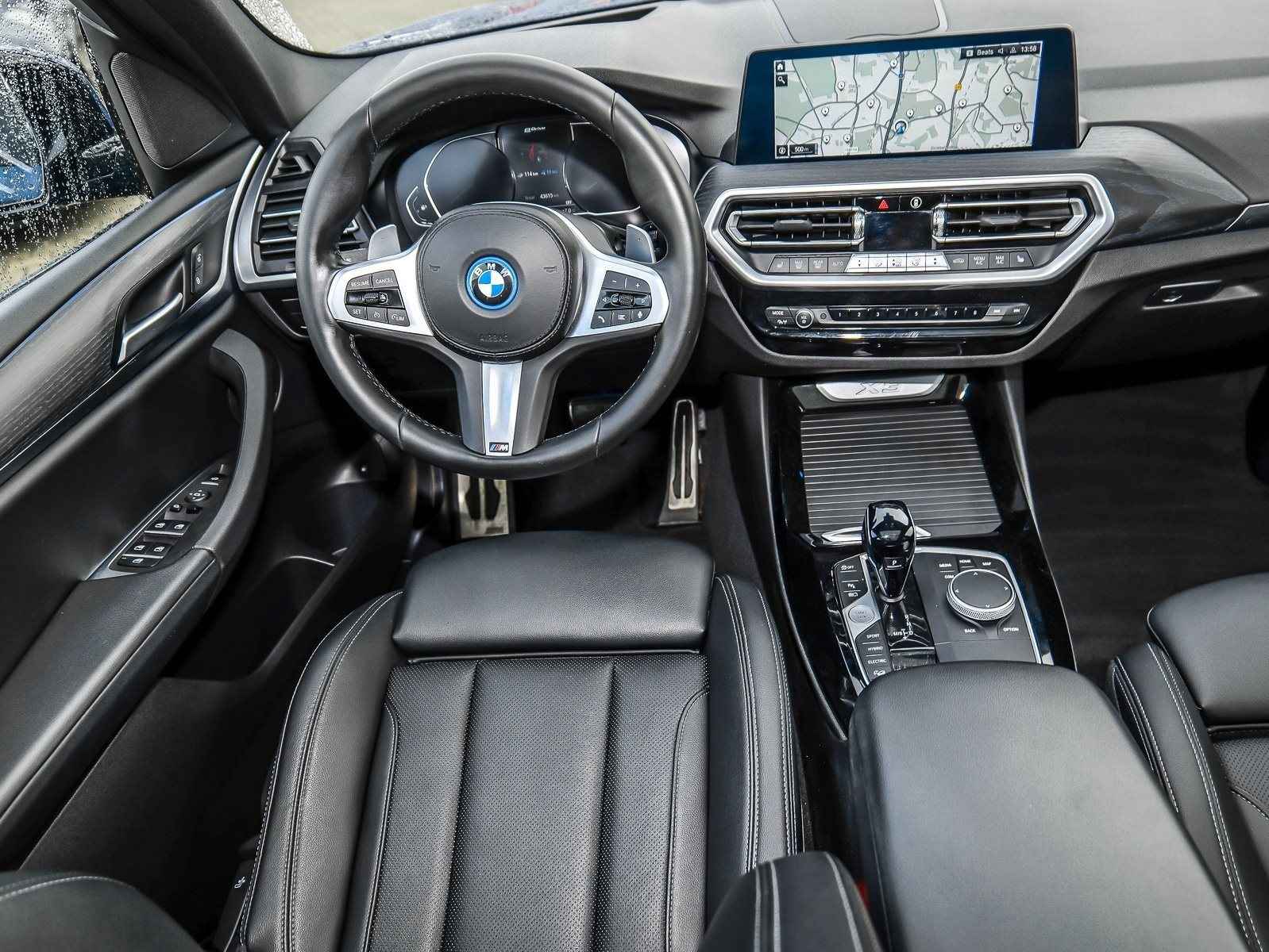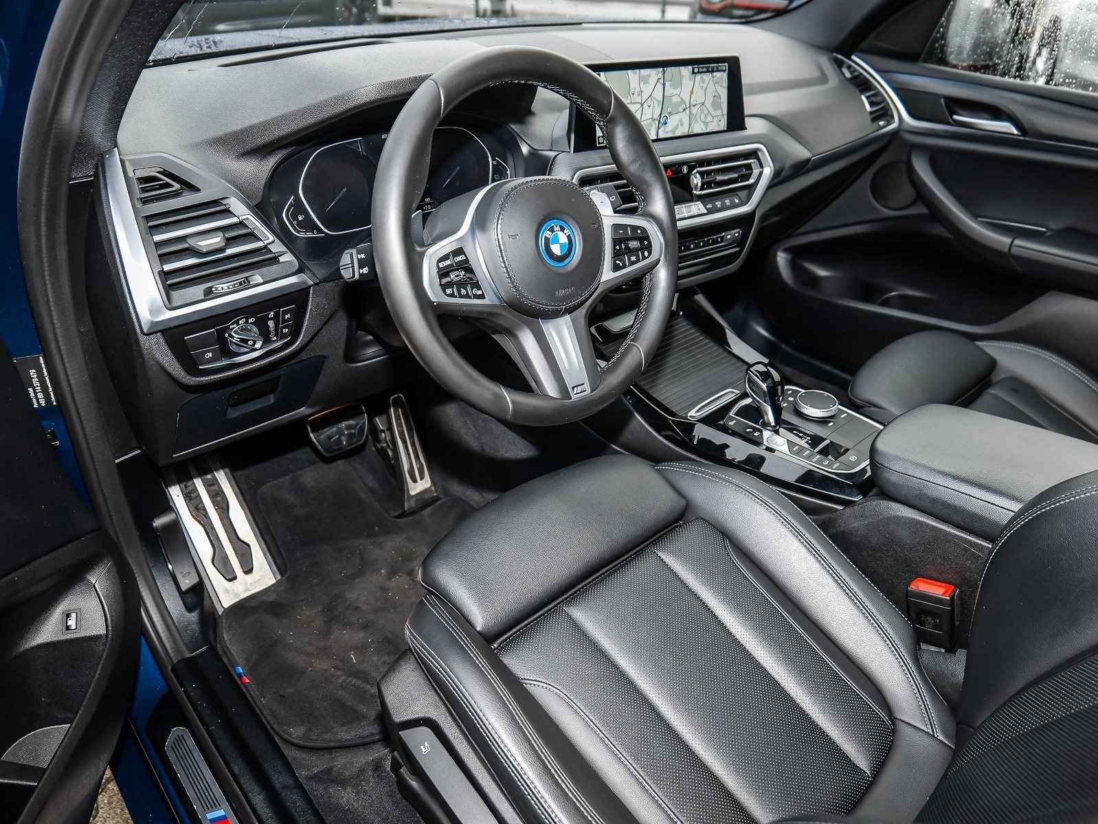 Werkelijk zeer fraai uitgevoerde BMW X3 xDrive 30e M-SPORT van 01-2022 met Slechts 43.613km. gereden (1e EIG - UNFALLFREI) in het Phytonic Blau Metallic met een Schwarz "Sensatec" Leder Interieur met Grijze Sierstiksels (SW) die o.a. is uitgerust met: xDrive Vierwielaandrijving, Standaard laadkabel (Modus 2) voor stopcontacten, Opbergpakket, ConnectedDrive Services (abonnement), ConnectedPackage Professional (abonnement), Innovatiepakket, M Aerodynamica-pakket, M Sportpakket, Remsysteem: M Sport-remmen (gelakte remklauwen), Performance Control, Sportautomaat Steptronic-8, Variabele sportstuurinrichting, Actieve voetgangersbescherming, Deactivering passagiersairbag, Driving -Assistent, Grootlicht-assistent, Binnenspiegel Automatisch dimmend, Bandenspannings-controle, Laserkoplampen, Gevarendriehoek,